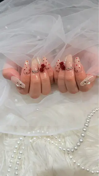 ジェルオフ無料、フィルイン無料🍒当日のご予約もお受けしています! 長さだし得意です♪任せてください❤️お気に入り登録をして頂くとメッセージのやり取りが可能になります。ぜひご登録お願いします!⚠️予約・申込み後は必ずミニモメッセージにて【オフ有無/補強/長さだし希望本数/3Dオフ/長さだしオフ】をお知らせください。初回/自爪ソフトジェルオフのみ無料。🌟当日のコースダウンに変更で料金の減額は出来ません。🌟長さだし・チップオフは300円/本、再利用200円/本。🌟paragel+1000円。🌟3D・3Dパーツ・埋め尽くし・アートパーツ・大きいパーツは180円/本。🌟補強は550円/本、長さだしは880円/本。予約した日...