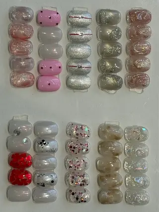 閲覧いただきありがとうございます🌼オプションにて下記メニューも追加可能です♪《ワンカラー》ニュアンスワンカラープラス300円《カラーグラデーション》ラメ散らしプラス300円《ワンカラー/フレンチ/グラデーション》カラーミキシングプラス300円《オーロラ/ミラー》ベースの上にオーロラ/ミラーがけ1本につきプラス100円カラーの上にオーロラ/ミラーがけ1本につきプラス150円《全メニュー対応》時間内パーツつけ放題プラス900円【オフ🌼2回目以降のお客様】付け替え自店オフ1本につき150円付け替え他店様オフ1本につき2...