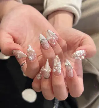 💓デザインカラーお任せください💓高技術×丁寧な接客に定評頂いております。自爪のことを大切にしながらネイルを楽しんで頂きたい💁🏼♀️。お爪に優しい施術を心がけています💗長年の施術経験があるので。長さ出しのフォルム細部にこだわっています。パーツ*ストーン*シールつけ放題は500種類から選べます✨、当店にあるパーツ内でしたら、大きいパーツも追加料金不要です🉐💓ワンホンネイル、y2kネイル、持ち込みアートフレンチ韓国ネイルなど、、💅組み合わせ相談しながら、可愛いネイルに仕上げます🙇♀️