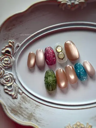 韓国風・ヨーロッパ風デザイン、長さ出し、パーツ盛り放題が得意です。丁寧なカウンセリングで理想の指先を実現し、モチの良さと繊細なアートにこだわって施術します。