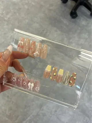 メニュー、カラー、パーツ等豊富です😌🌸前日予約も大歓迎❣️気軽に御予約、メッセージ下さい😊ご新規様はミニモで空き状況をご確認ください✨(ご予約お問い合わせも可能です)※お時間枠がある限り当日予約可能です♡♡Netflix、YouTubeも観ながら施術を受けられます📺➡️ご予約希望の方は①お名前フルネーム(カタカナ)②電話番号③メニュー④コース⑤オフ有無⑥ご希望日時をお知らせ下さい。デザインについて🧸🌼■ご希望のデザインがあれば2週間前までに写真を送って頂ければ同じ材料を揃えさせて頂きます♡※欠品、販売していない物は揃...