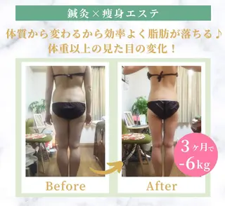 どのメニューもお一人お一人のお身体のお悩みに合わせて施術致します。痩身コースは完全オーダーメイドだからこそしっかり結果がでます。他店で痩身エステをしたことがある方にこそ気に入っていただけるおコースになっております。スクール講師による施術/技術力が高いスタッフ/ブライダル/各種大会前にボディラインを整えにご来店いただいてます。女性脱毛施術全身16000円女性お顔脱毛3980円女性vio脱毛5980円他媒体複数掲載してます。リラクゼーションメニューには水素吸入(+料金)しながら極上アロマでオールハンドマッサージorア...