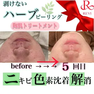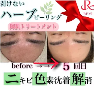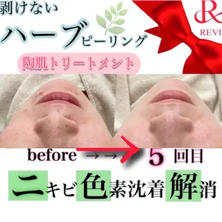 当サロンのページをご覧いただきありがとうございます🥺🆕2024年4月より池袋にオープン致しました🆕癒しと美を追求するプライベートサロンです💆🏻♀️✨✴️REVIハーブピーリング《陶肌トリートメント》✴️剥離なし/ダウンタイム無しのお肌に優しいソフトピーリングです✨植物幹細胞や厳選された天然由来の美容成分が配合されたパウダーをマッサージしながら肌の角質層まで浸透させることで、肌を活性化し、キメの整った陶器のような美しい肌へ生まれ変わらせるメニューです🫧💁🏻♀️こんな方にオススメです💕◎ニキビ跡を薄くしたい◎毛穴の開きが気になる◎シ...
