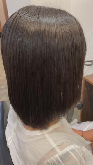 切りっぱなしボブ、カラー、縮毛矯正