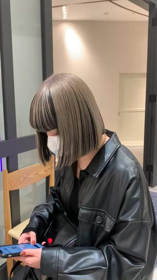 - ぱっつん前髪、ブリーチ、デザインカラー、ダブルカラー、前髪カット