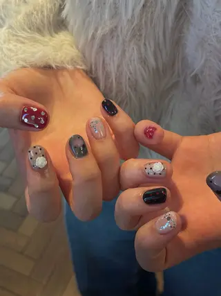 こんにちはご覧いただきありがとうございます𖤐´-"お気に入り登録"をしていただくと、ご予約前のご連絡もスムーズに行えますご不明点ございましたらメッセージにてご連絡ください✉️📍必ず注意事項をご確認の上、ご予約をお願いいたします----------------------------------------コース説明-○シンプルコース・ワンカラー・グラデーションラメ/カラー・変形フレンチ斜め/ストレート/バルーン○ワンポイントコース・片手1本ずつに1種類のアートが入ります・他8本はワンカラー/グラデーション/変形フレ...
